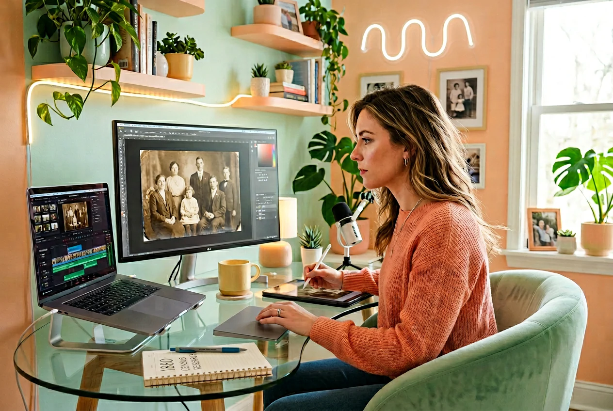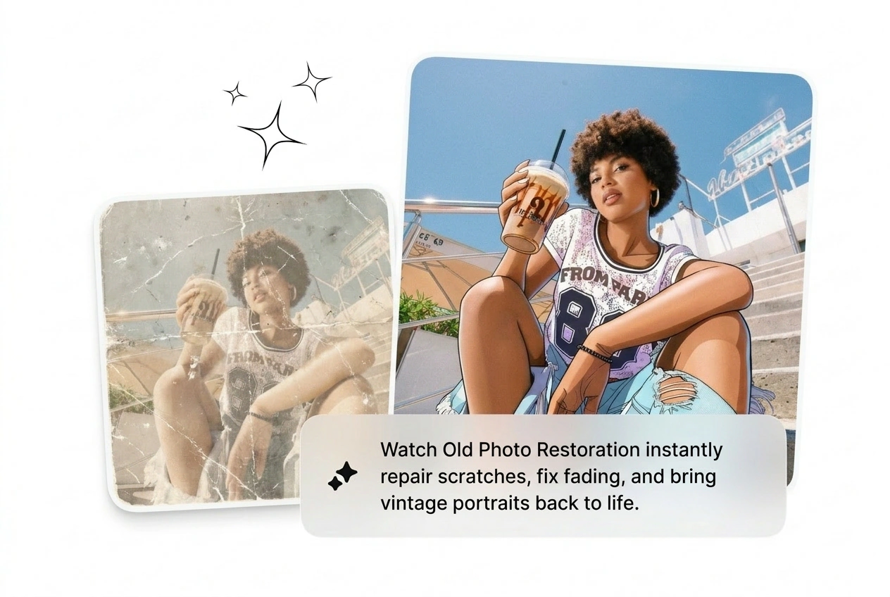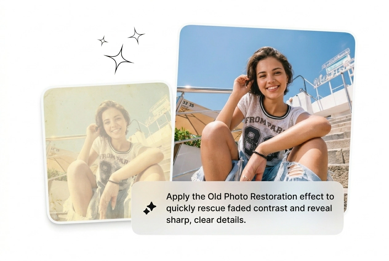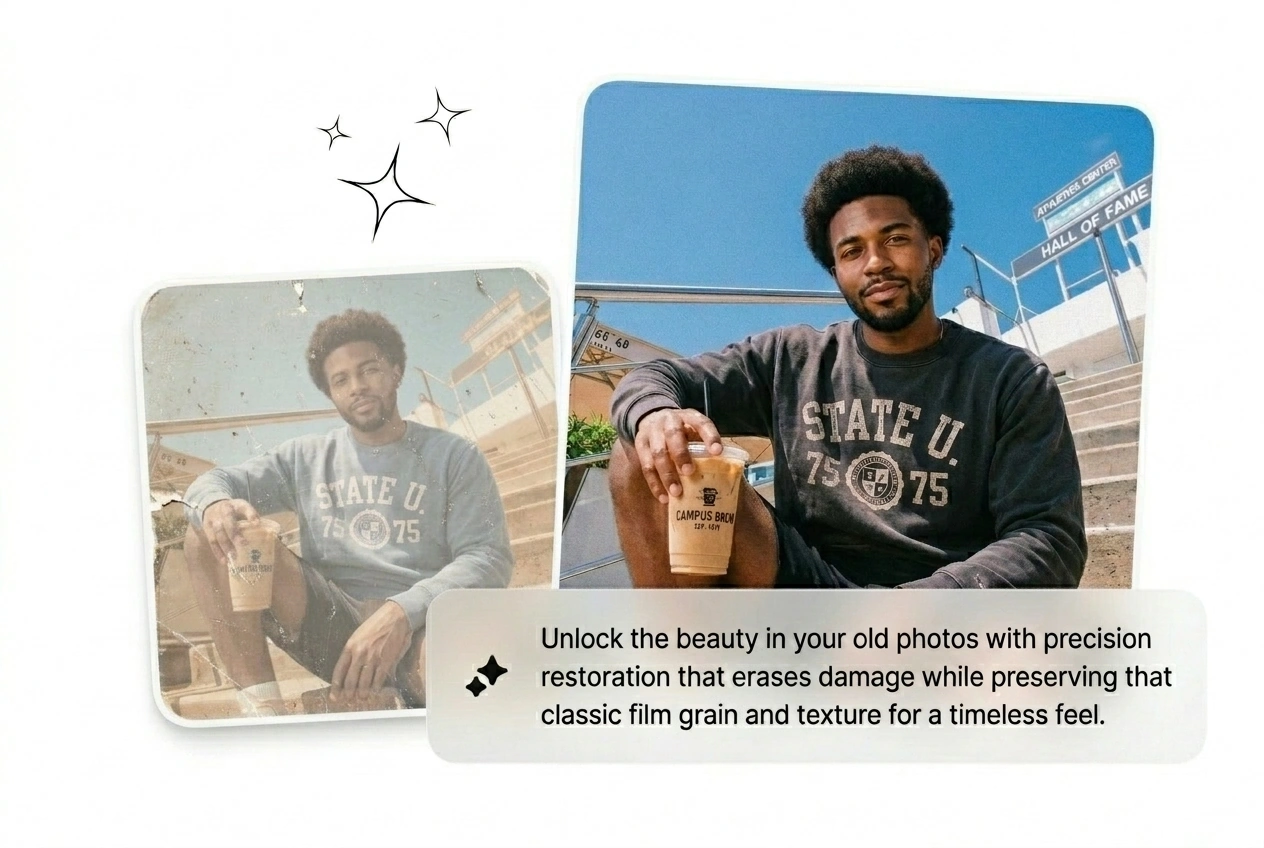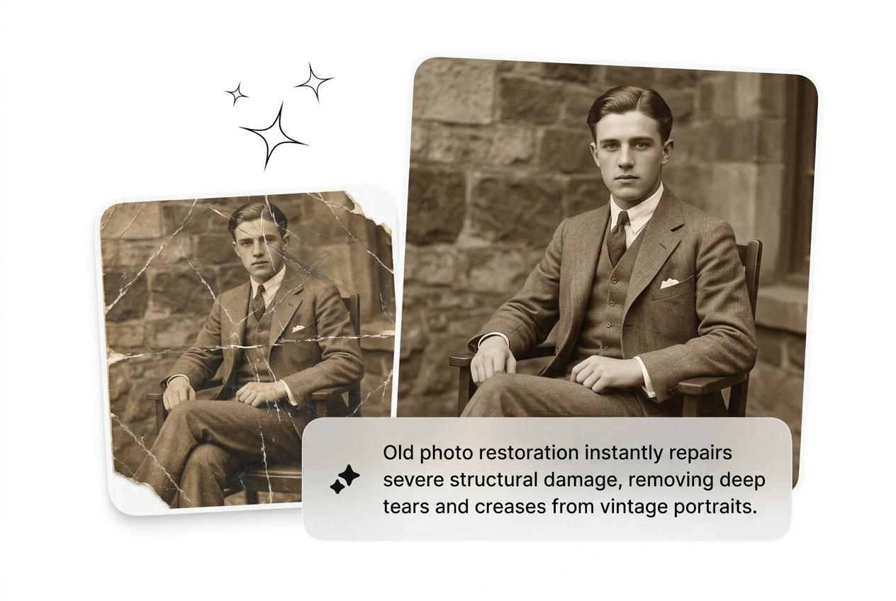 Digitaliser hundredvis af historiske filer dagligt. Gendan gamle billeder online effektiviserer workflowet, så du slipper for manuel clone-stamping. Bevar den autentiske tekstur, fiks gamle billeder hurtigt, og eksportér hele samlingen før din frokostpause slutter.