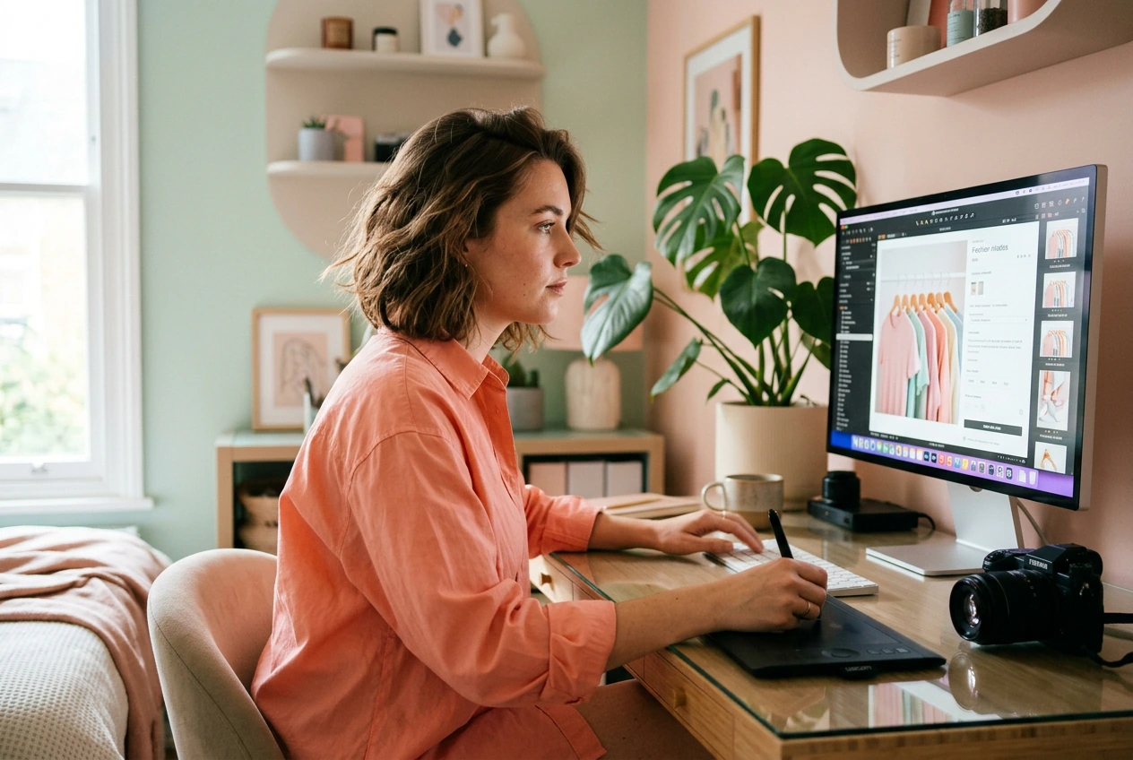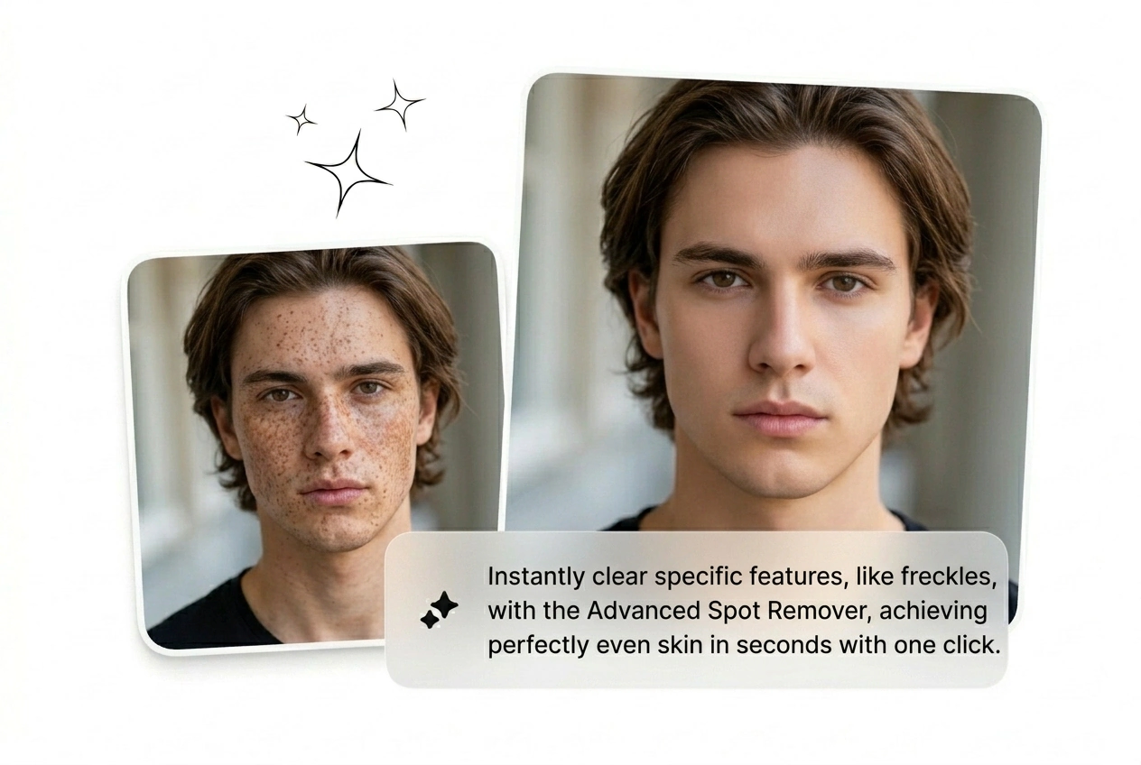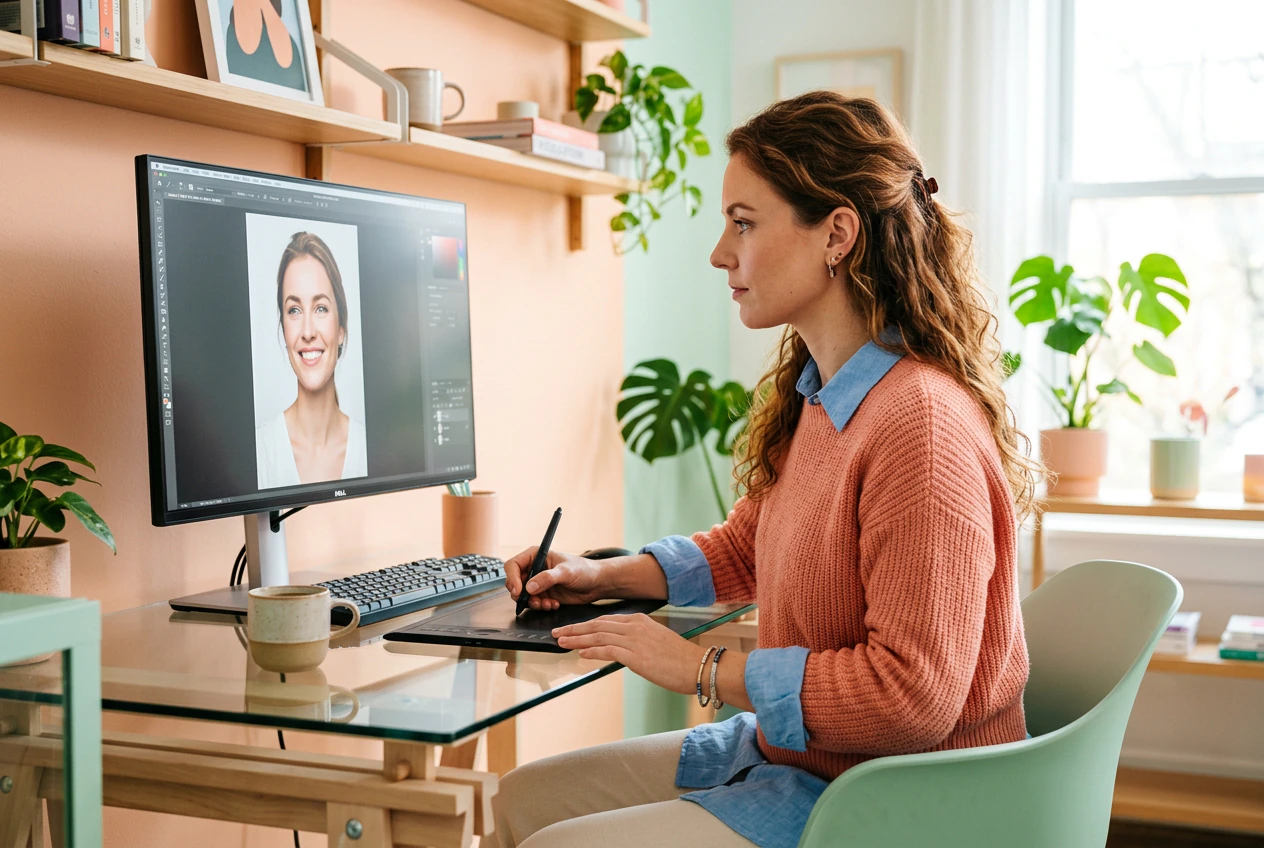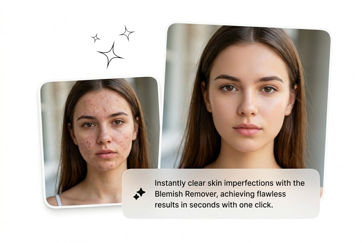 Sto zdjęć produktowych wróciło z odblaskami, odstającymi włosami i widocznym pryszczem na brodzie modelki. Usuwanie niedoskonałości ze zdjęć przetworzy całą partię online, za darmo, przed poniedziałkową akceptacją klienta. Dostarcz czyste zdjęcia bez ponownego wynajmowania studia.